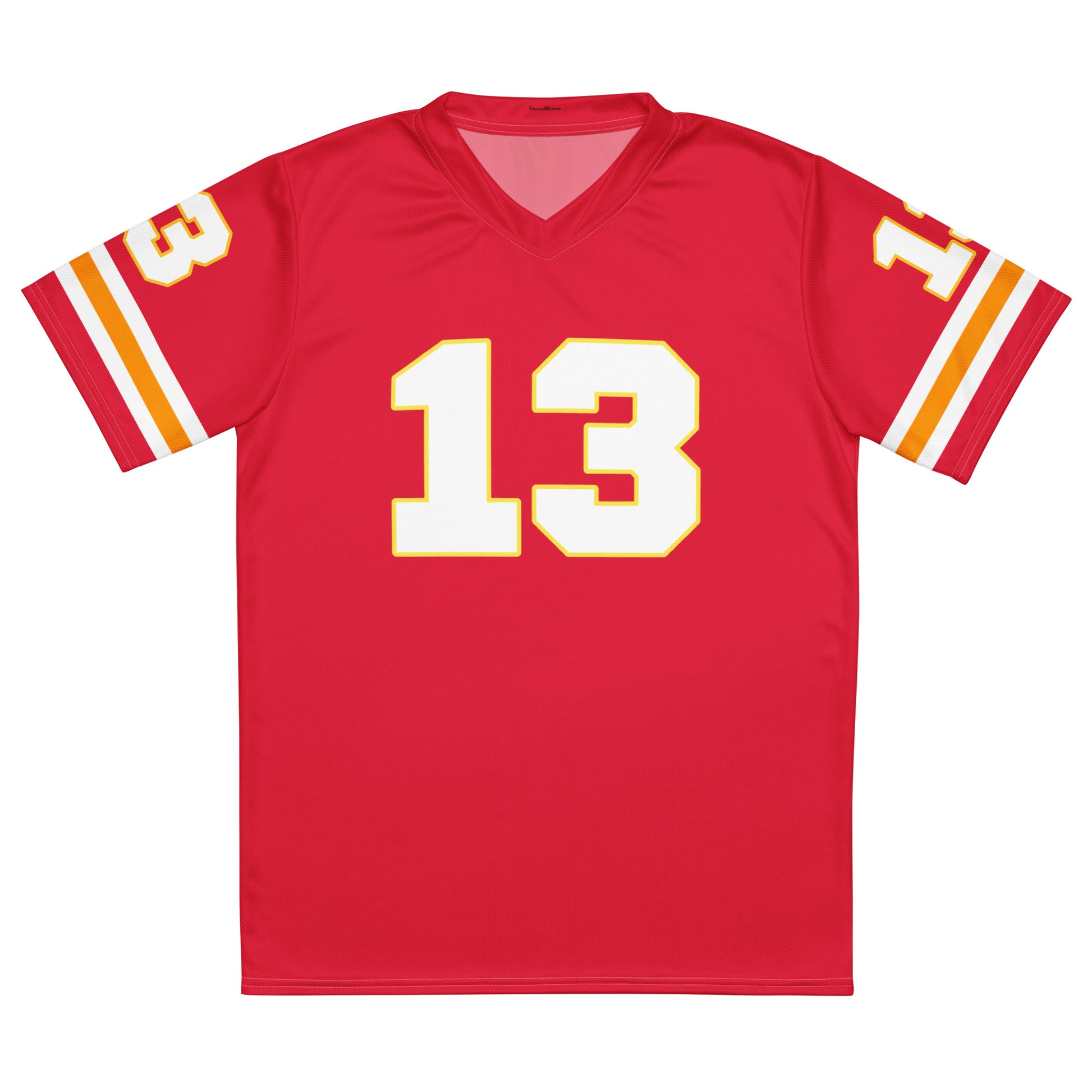 Looking for the perfect sports jersey? We have you covered—made of 100% recycled polyester fabric, this shirt is breathable, moisture-wicking, and has a double-layered v-neck collar that creates a premium look.