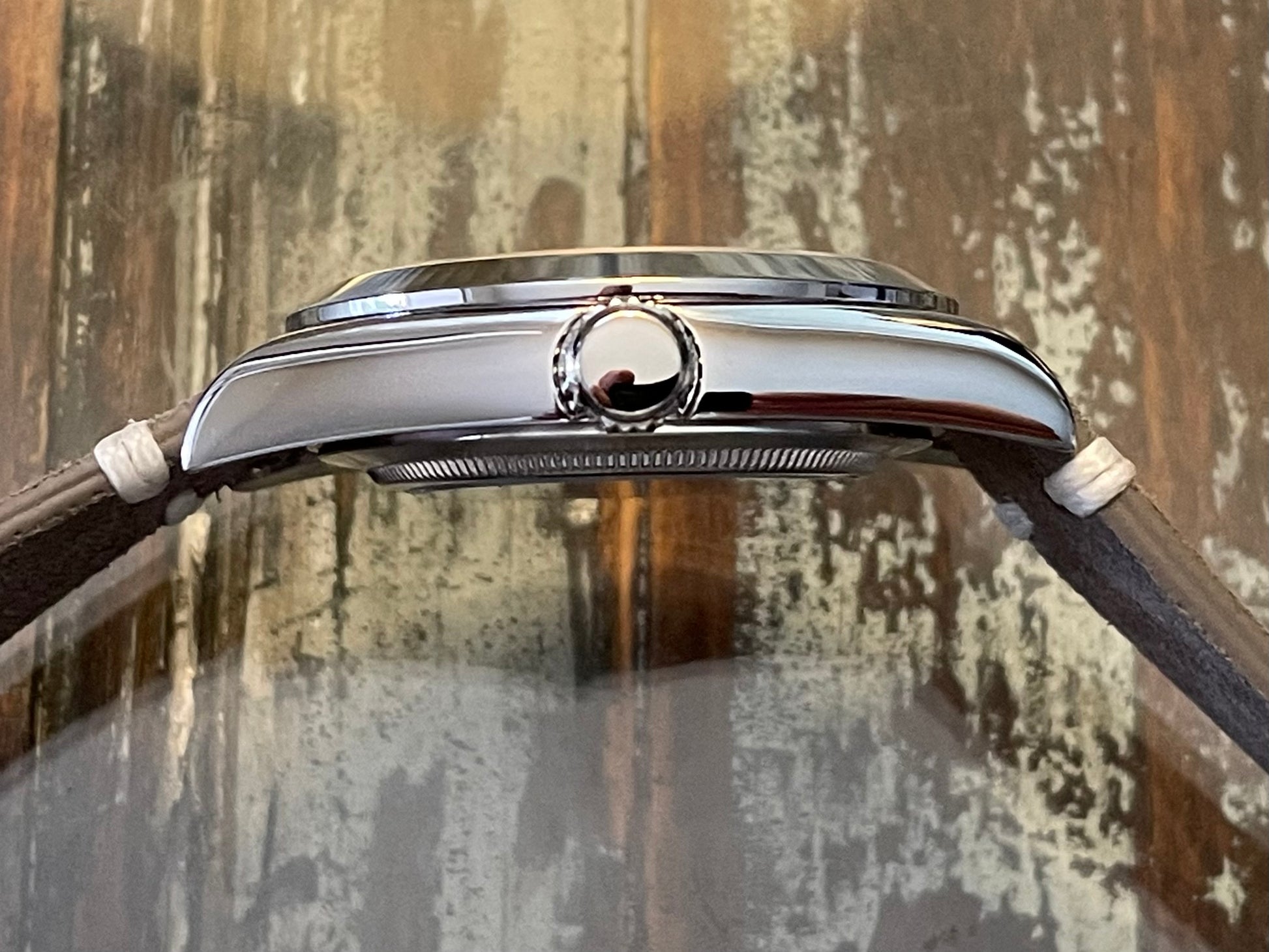 Blue dimensionally textured dial with applied indexes. Arrow head, lumed hands with red-tipped sweep seconds hand. Stainless steel case featuring screw down crown, sapphire glass, and a display back. Genuine Seiko NH35A movement with 41 hr power reserve; auto and hand wind. 39mm diameter, 46mm lug to lug, 20mm lug width. Gray nubuck suede strap with stainless steel buckle.